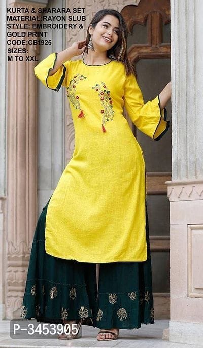 Reyon Women Kurti With Dupatta & Bottomwear*