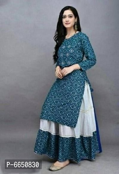 Rayon Printed Green Kurti With Palazzo For Women/Girls