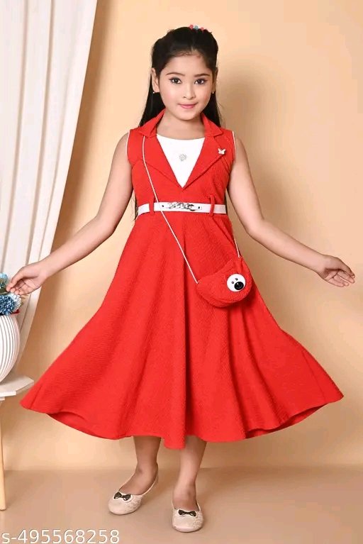 :*Crepe Fit And Flare Girls Frocks & Dresses*