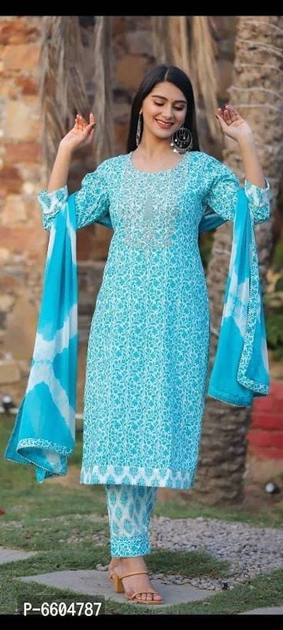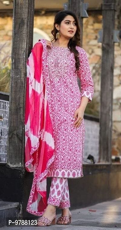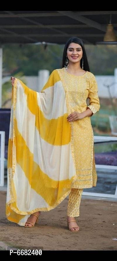 Name: Cotton Kurti With Dupatta and Bottom Set