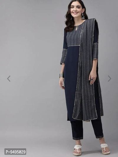 Styliesh and party wear 2 piece Kurti in reyon fabric(Blue)