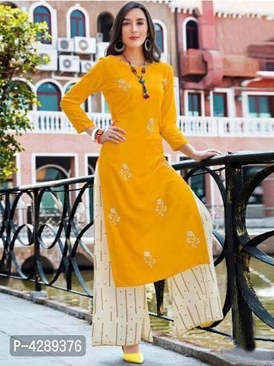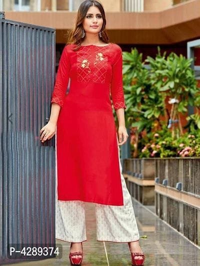 Name: Women Rayon A-line Embroidered Long Kurti With Palazzos
