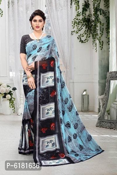 For Women’s wear latest Beautiful Printed Pure Georgette Saree with Blouse Piece Fabric: 70-72 Heavy Georgette