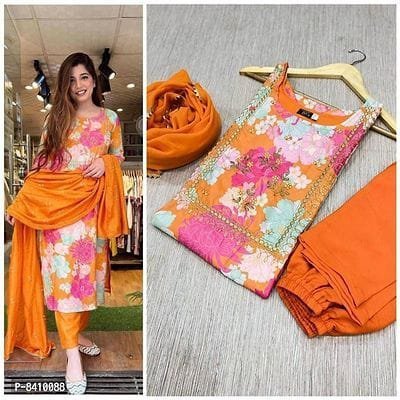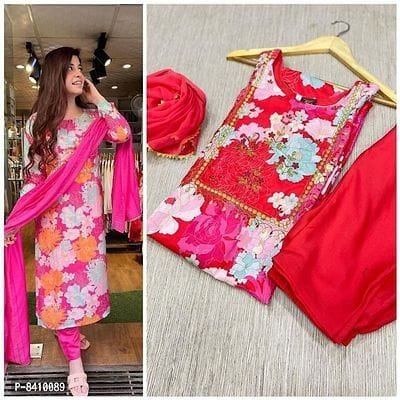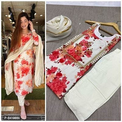 Designer Rayon Flower ? Print Embroidery Work Kurti Pant With Dupatta ..