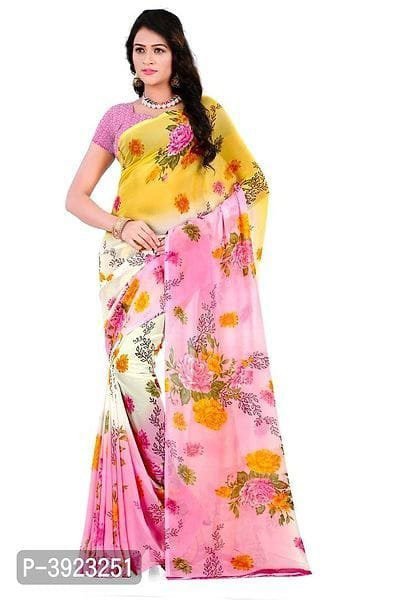 Name: Printed, Floral Print Daily Wear Poly Georgette, Chiffon Saree (Multicolor)
