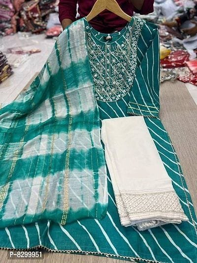 Cotton Kurti with bottom pant and Net Embroidery Duppata