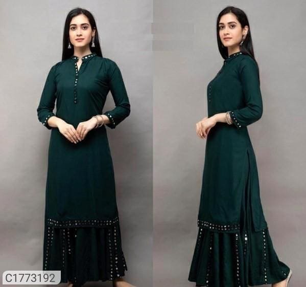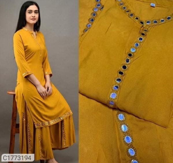 Name: rayon mirror embroidery kurti with palazzo