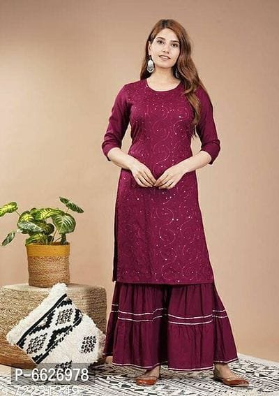 rayon mirror embroidery kurti with palazzo