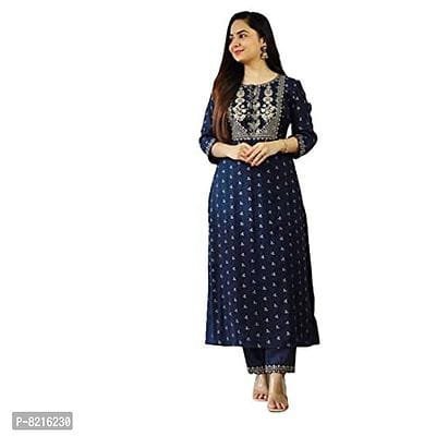 Name: Avnit Trade Embroidered & Printed Beautiful, Styliesh and party wear 2 piece Kurti in reyon fabric(Blue)