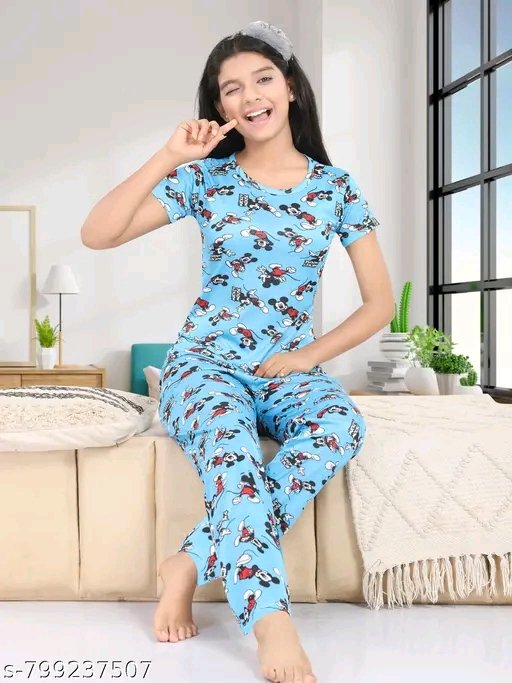 Name: Stylish Girls Kids koller Night suit – girls night suit- kids girls night suit- printed girls night suit