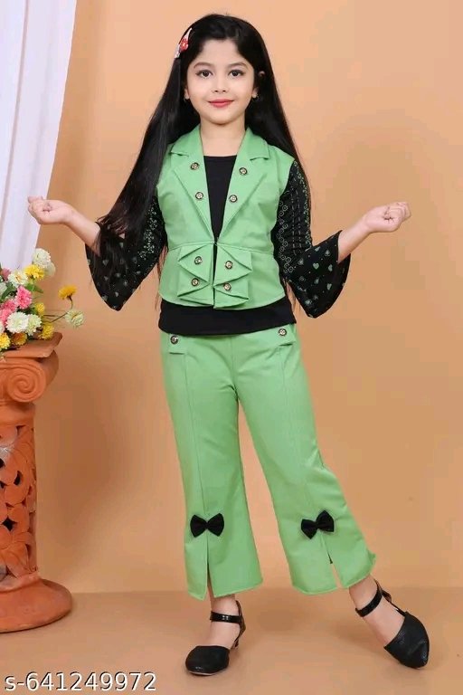 Name: Stylish Pink and Black Girls’ Partywear Top and Pant Set with Bow Detailing