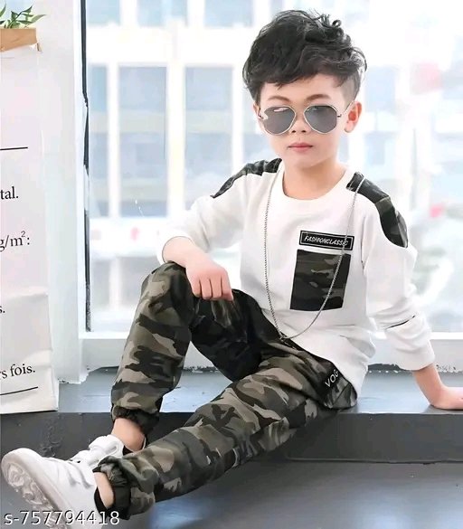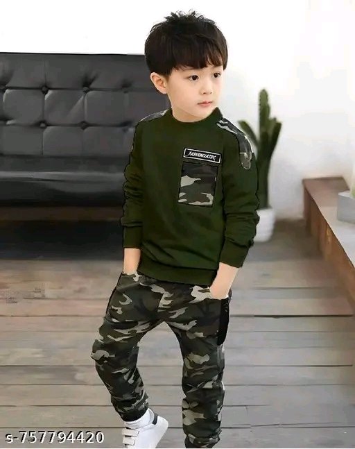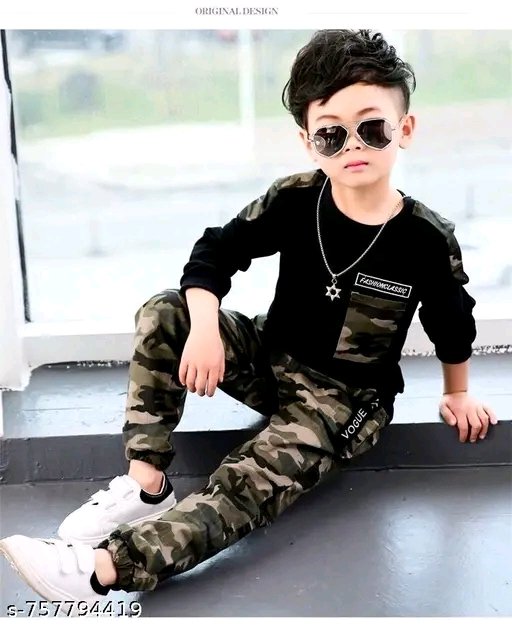 Trending Boys Army T-shirt and pant pair in best look.