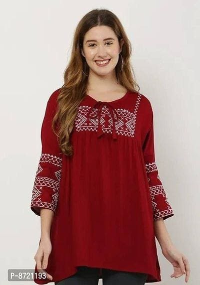 Name: Trendy Regular Sleeves Embroidered Red Casual Top