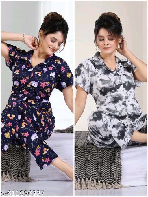 Name: Womens Digital Print Night Suit ( COMBO ) PACK OF 2 PCS Night Suit – Night Suit COMBO FOR WOMENS AND GIRLS
